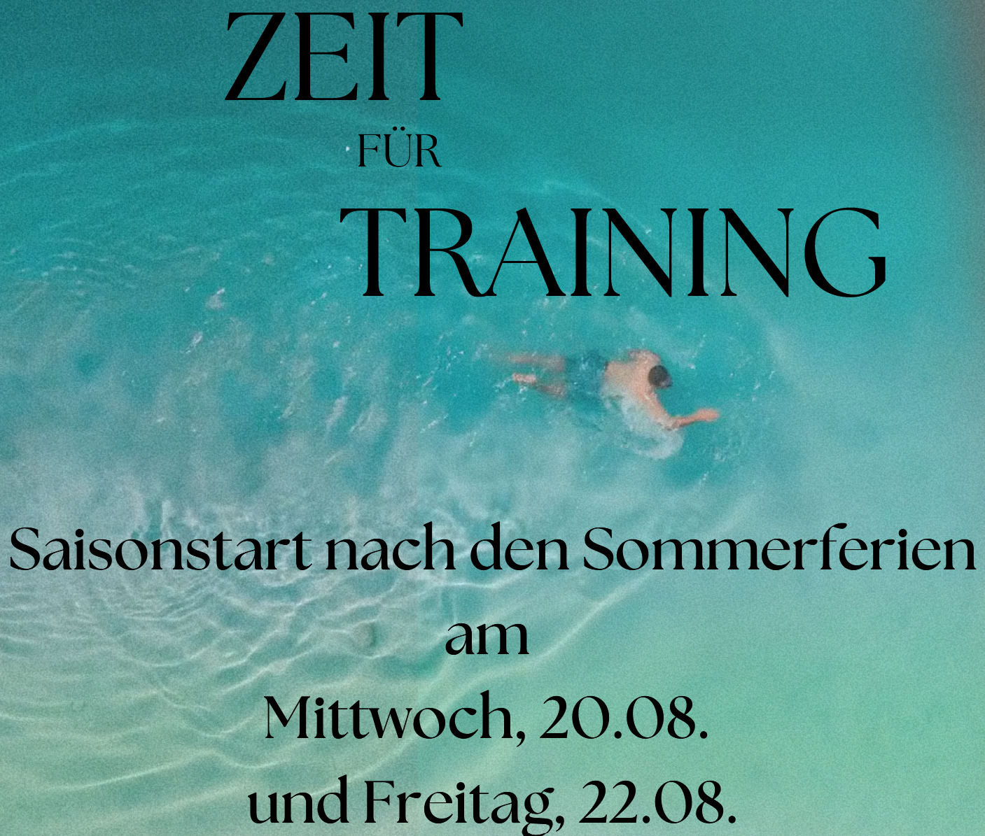 Ab Mittwoch, den 20. und Freitag, den 22. August treffen wir uns wieder zu den gewohnten Trainingszeiten in der Schwimmhalle. ❤️